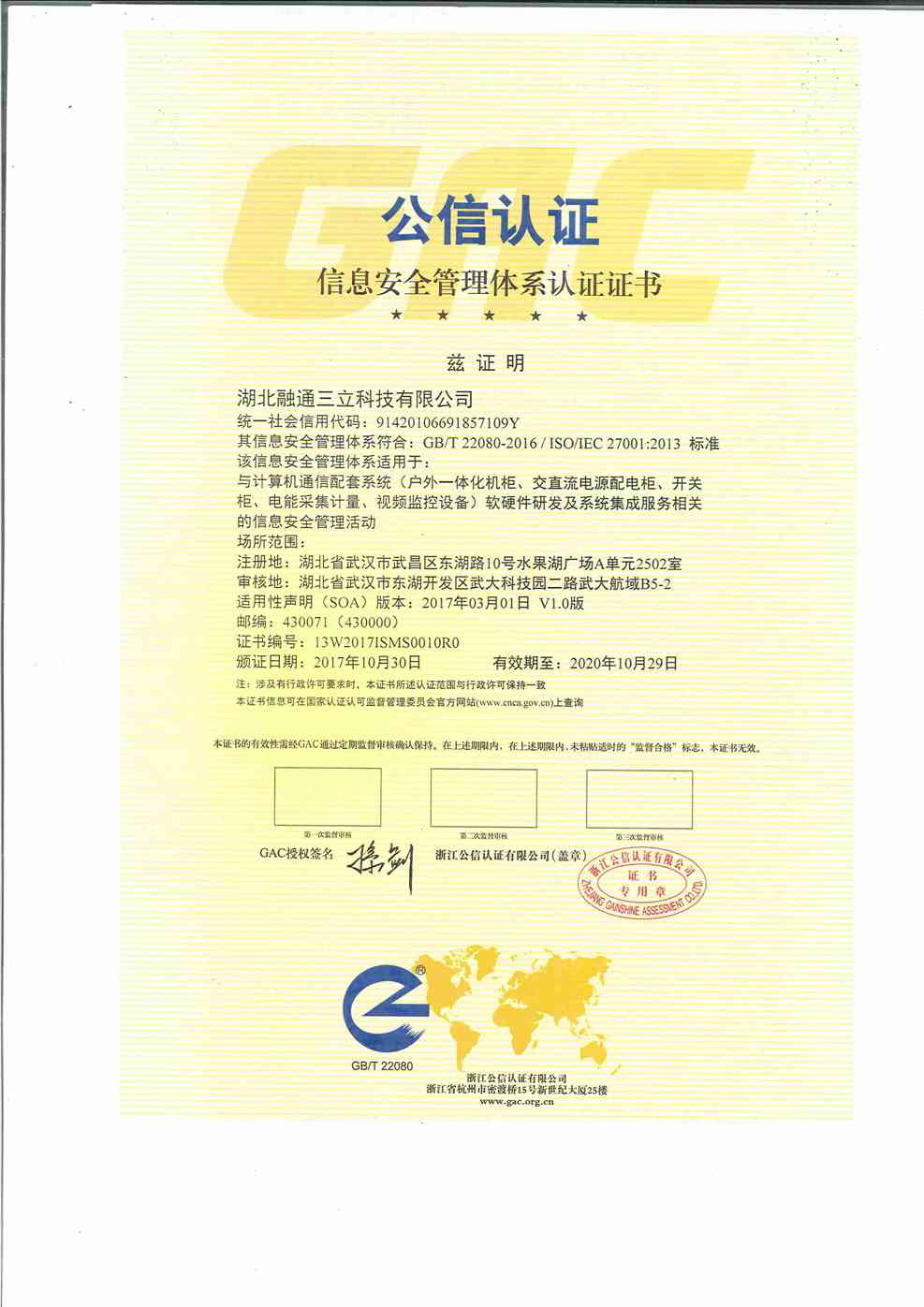 測(cè)量管理體系證書